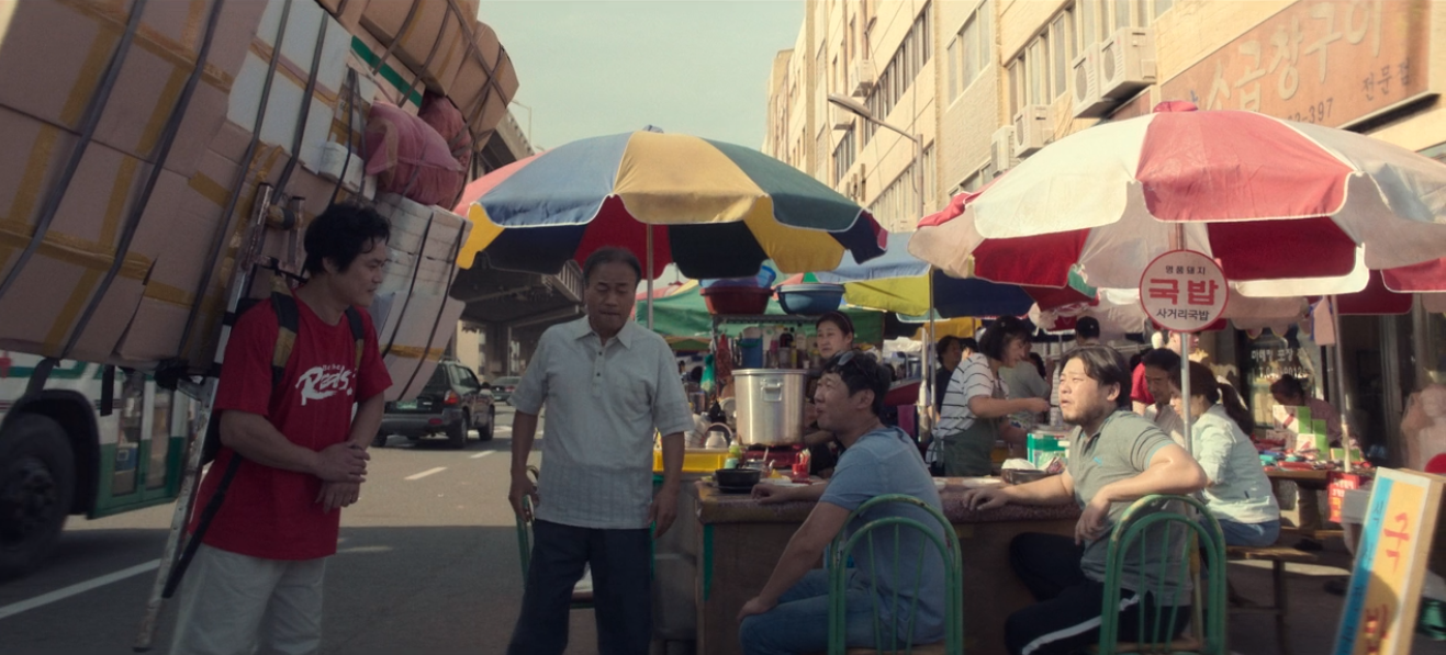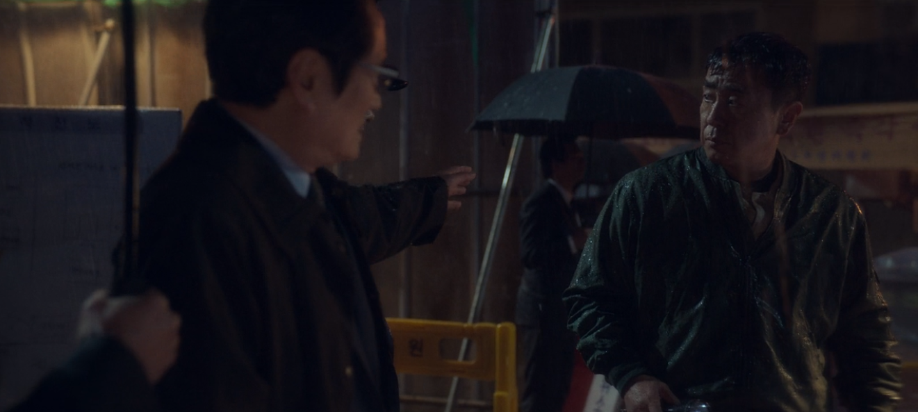 늦은 밤, 경찰들은 시위를 진압하기 시작합니다. 결국 시위는 갑자기 시위 현장을 급습한 용역과 경찰들에 의해 무산됩니다. 주변 상가는 모두 부서지고 시위에 참여한 상인들은 모두 경찰에 끌려가게 되죠. 재만은 비도 오는데 밤늦게까지 아내가 돌아오지 않자 걱정이 됩니다. 그래서 강훈에게 밤 10시까지 꼭 돌아오겠다며 약속하고 아내를 찾으러 밖으로 나갑니다.