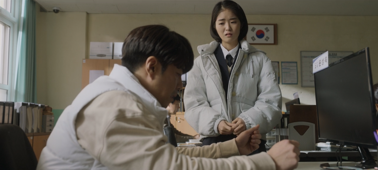 학교는 사고 동영상이 유포되어 난리입니다. 기간제 교사인 성욱은 영상을 올린 학생의 카메라를 압수하고 유튜브 채널을 폐쇄합니다. 그리고 일환은 성욱을 방으로 불러 어제 사건이 성욱이 벌인 짓이 아닌지 의심합니다. (기수가 벌인 일처럼 나오기는 했지만 성욱이 지난밤에 체육관 농구 골대를 홀로 바라보던 것도 그렇고 이전에 기수를 테스트하기 위해 위험한 일을 벌인 걸 보면 이번 농구 골대 사건도 성욱이 저지른 것으로 추측됩니다.) 하지만 심증일 뿐 입증할 증거는 남아 있지 않죠.