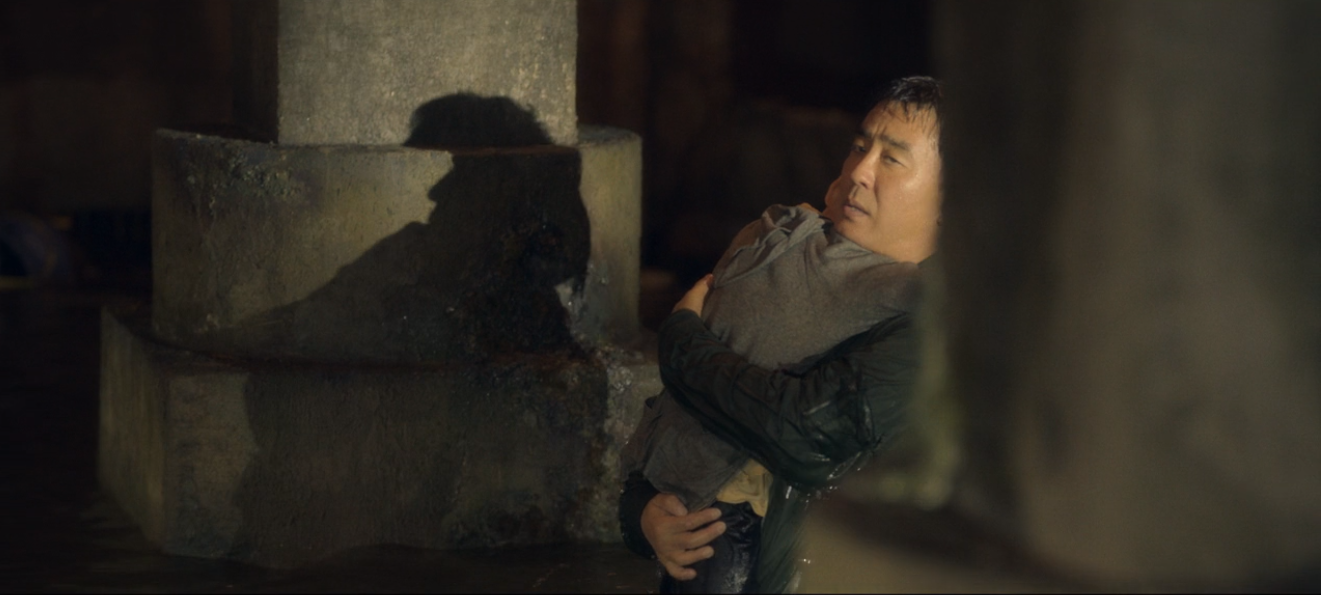 그렇게 청계천으로 온 재만은 경찰 버스에 체포된 아내를 보게 됩니다. 이에 이성을 잃고 아내를 구하기 위해 경찰들에게 달려듭니다. 전경 한 개 중대를 모두 박살내고 강력한 물대포를 맞고도 호송용 차량에 붙은 쇠창살을 뜯어내는 괴력을 보이죠. 그러나 강훈을 생각하라며 도망가라고 외치는 아내를 보고 결국 경찰들을 피해 하수도로 도주합니다.