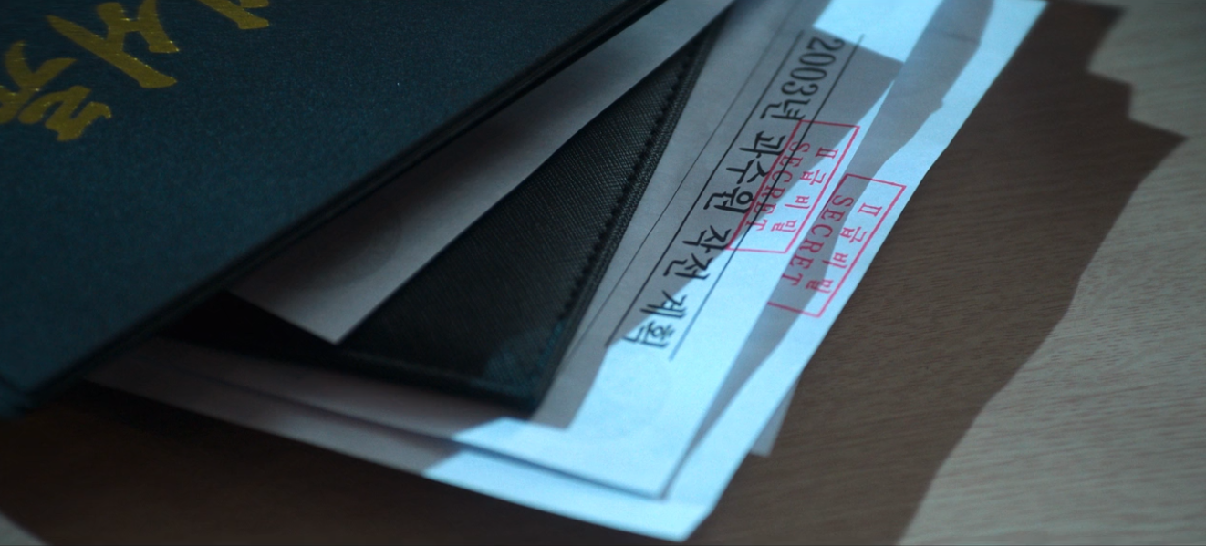 민용준의 책상에서 살짝 보이는 '2003년 과수원 작전 계획'. 이는 지난 13화에 있었던 두식과 미현의 과수원에 침투한 사건을 의미합니다. (주원은 이 사건에서 배제되었죠)