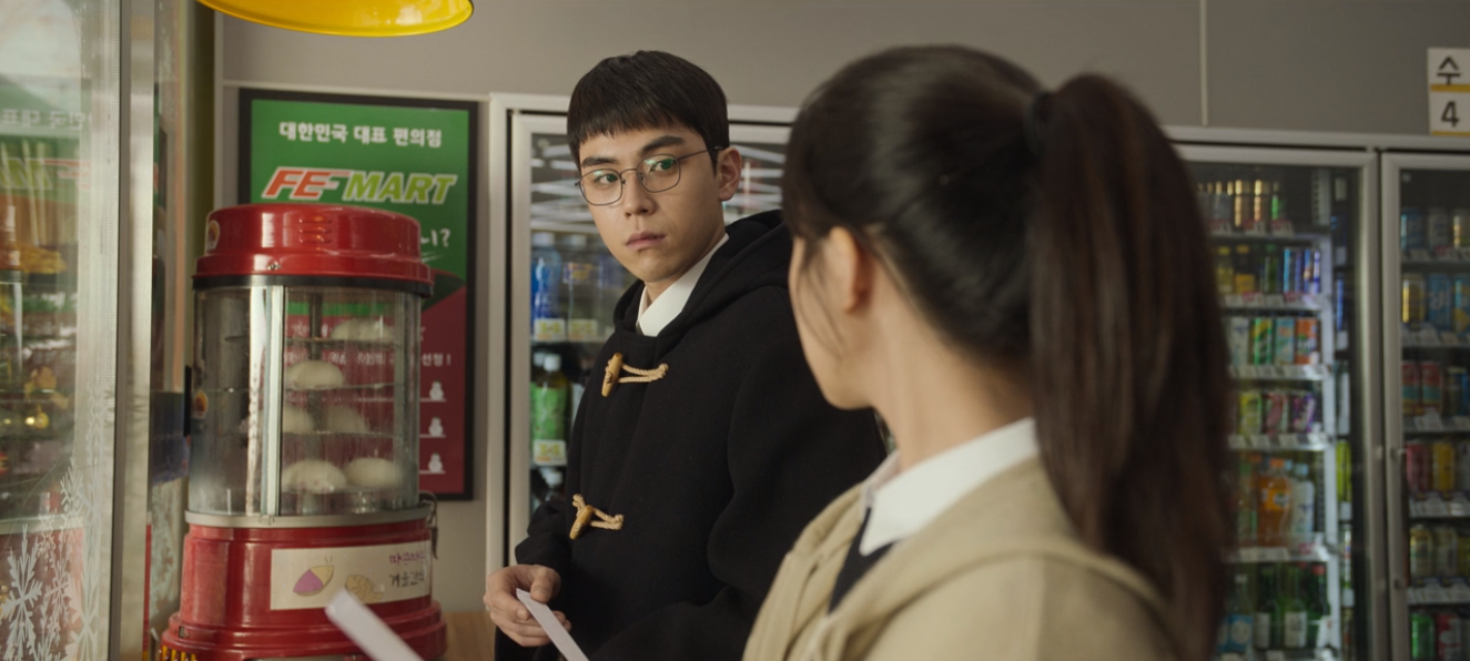미현 역시 뛰어난 오감 능력으로 천장에 숨겨진 몰래카메라를 발견합니다.(몰래카메라는 성욱이 일환을 포함해 학교를 감시하기 위해 몰래 설치한 것이었죠.) 그리고 미현은 자신이 봉석의 엄마라고 밝히지 않았음에도 자신을 봉석의 엄마로 알고 있는 일환을 의심합니다.