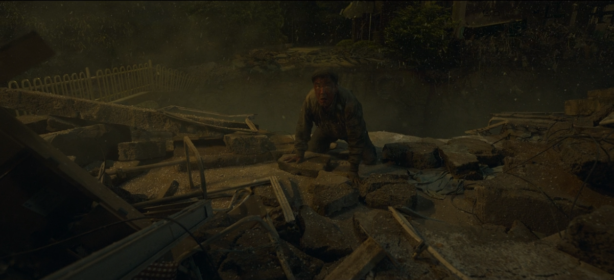 재만은 무너진 잔해를 몸으로 버티며 일환과 강훈을 구하려 하죠. 하지만 잔해가 무거워 버티는 것 외에는 아무것도 할 수 없는 상황. 강훈은 손이 부러진 상태였지만 아버지와 선생님을 구하기 위해 이를 악물고 막힌 잔해를 주먹으로 쳐 부셔 냅니다.