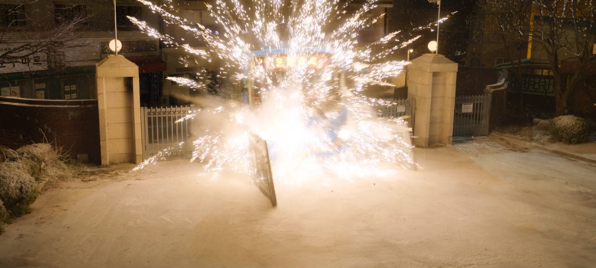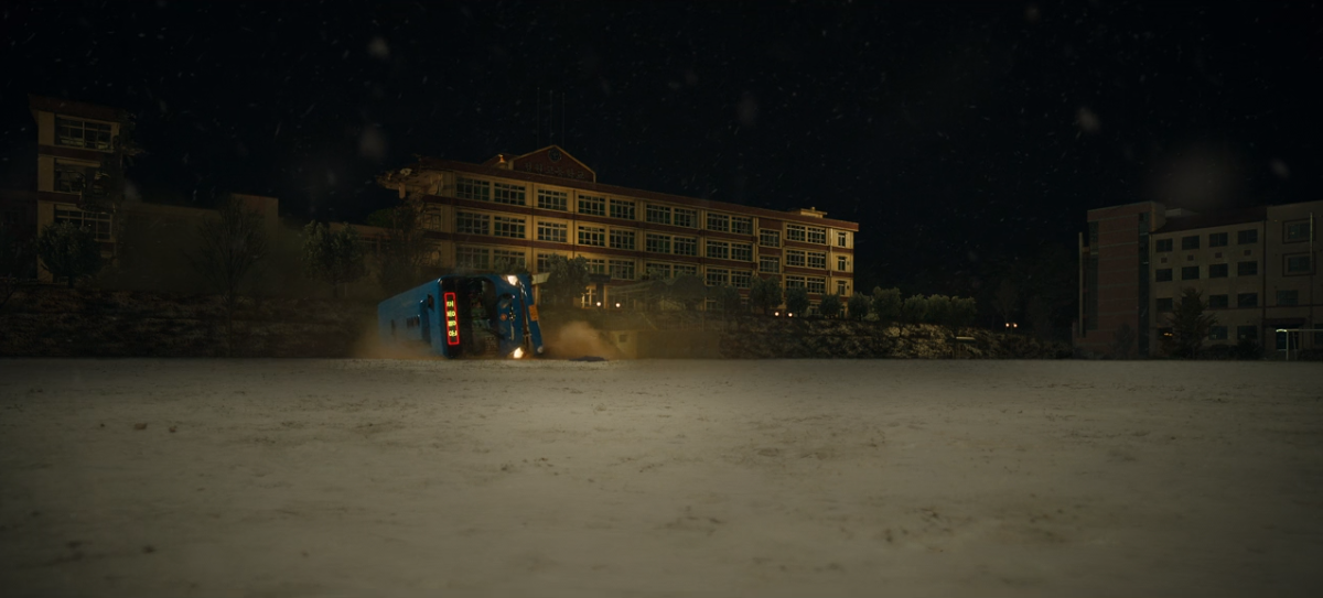 학교로 향하던 계도는 준화와 봉석이 싸우는 것을 목격합니다. 그리고 봉석을 구하기 위해 학교 정문을 부수고 그대로 버스를 밀고 들어가죠. 운동장으로 들어오는 버스를 본 준화는 봉석과 버스를 부딪히게 만들려고 하지만 계도가 버스를 틀어 준화가 버스에 부딪히게 됩니다.