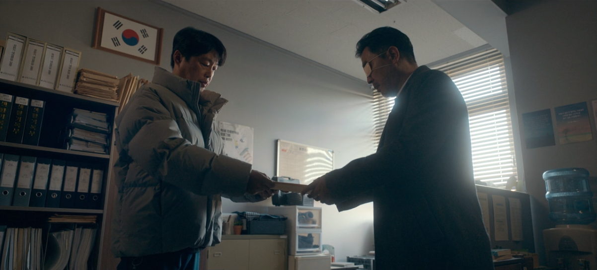 그리고 다시 현재, 덕윤은 두식의 임무에 대해 말해줍니다. 미현은 덕윤이 두식에 대해 말하며 호주머니 속에서 몰래 총을 장전하는 걸 듣게 됩니다. 결국 총격전이 벌어지고 그 과정에서 미현은 발에 총을 맞게 되죠. 덕윤은 도망친 미현과 죽었다는 요원들의 상황을 확인하기로 하고 용득에게 선생 일환을 쫓아 파일을 회수하라고 명령합니다.