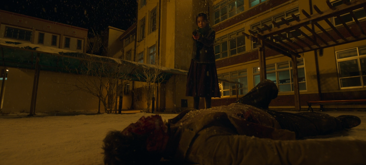 마지막으로 하늘에서 내리는 눈을 보며 재석은 그대로 숨을 거두죠. 용득은 울며 학교 밖으로 도망칩니다.
