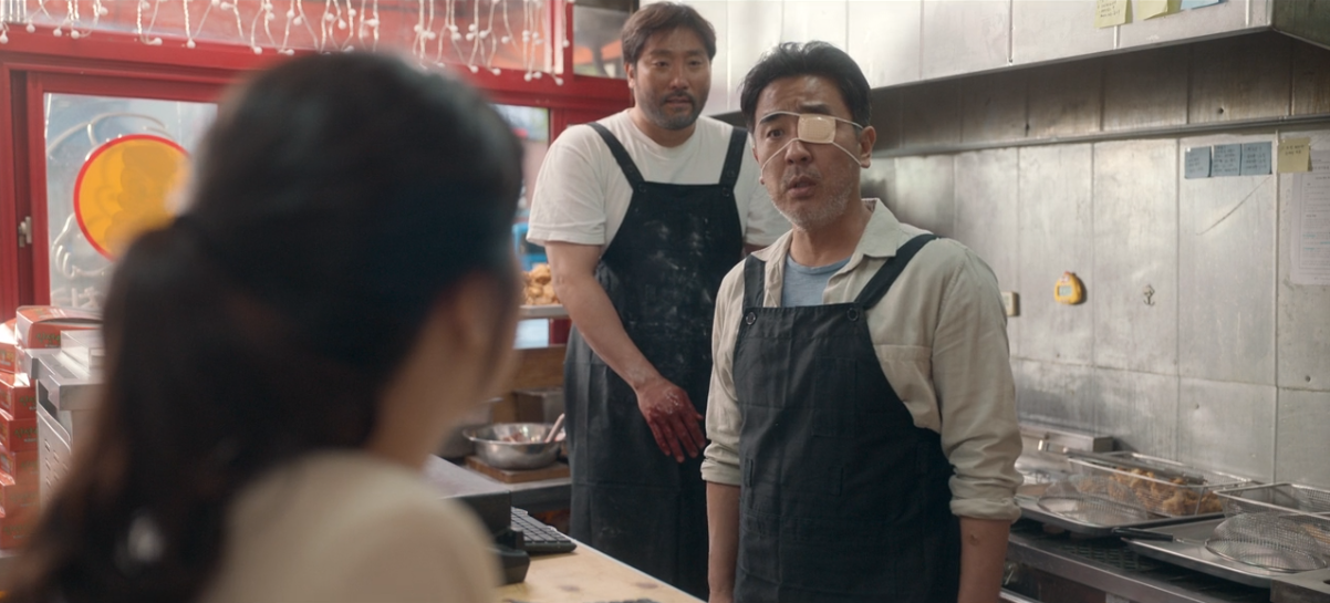 그리고 시간이 지나 덕윤과 용득이 찾아와 요원일을 하는 것을 제안합니다. 빛에 대한 두려움과 밖에 대한 두려움에 나가지 못하는 재석에게 선글라스를 주는 용득. 용득은 그가 캐리어에 숨은 채 바깥으로 나갈 수 있게 도와줍니다. 그렇게 재석은 덕윤 일당과 함께 요원 일을 하게 된 것이죠.