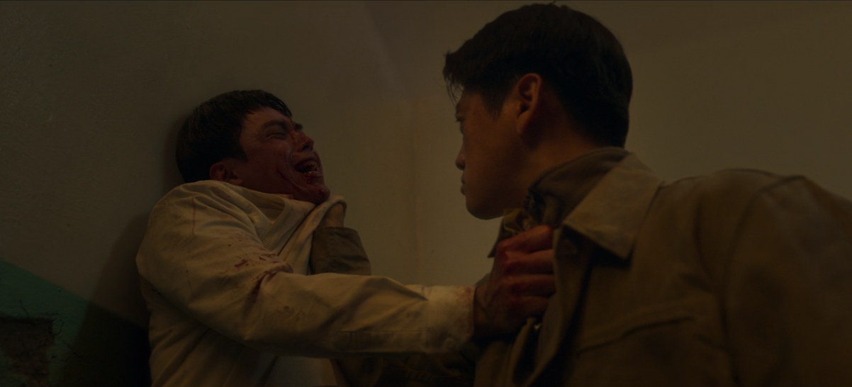 하지만 두식의 존재를 알고 있던 덕윤과 요원들이 두식을 제압하죠. 두식이 가슴에만 총을 쏘는 것을 알고 있던 그들은 방탄조끼를 입고 미리 대비하고 있던 것이죠. 붙잡힌 두식에게 덕윤은 다가와 말합니다.