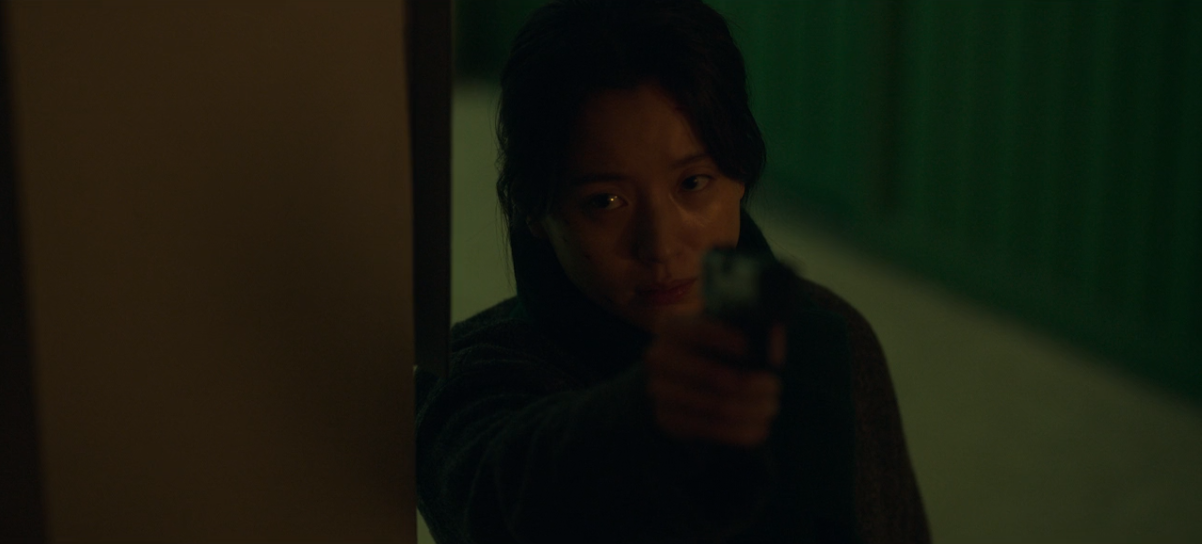 창문으로 우회해 재학을 쏜 미현. 재학은 결국 죽고 미현은 일환과 기수에게 도망가라고 말합니다. 하지만 일환은 기수만 집으로 돌아가라고 말하고 재학의 총을 주워 북한요원들을 쫓죠.