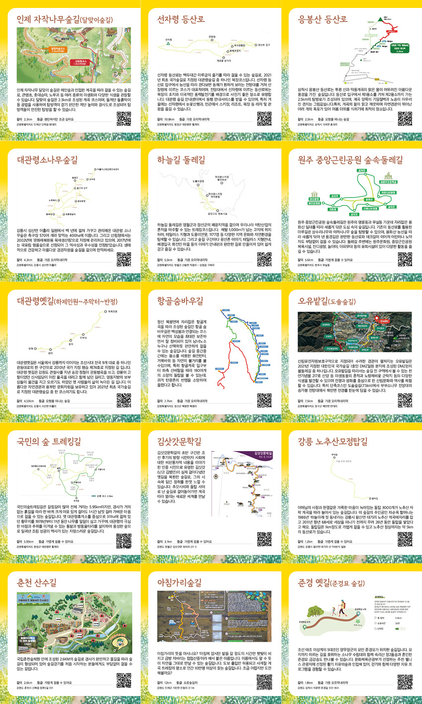 이번 포스팅에서는 걷기 좋은 명품 숲길 50곳 중 2탄 강원권 15곳을 알아보았습니다.