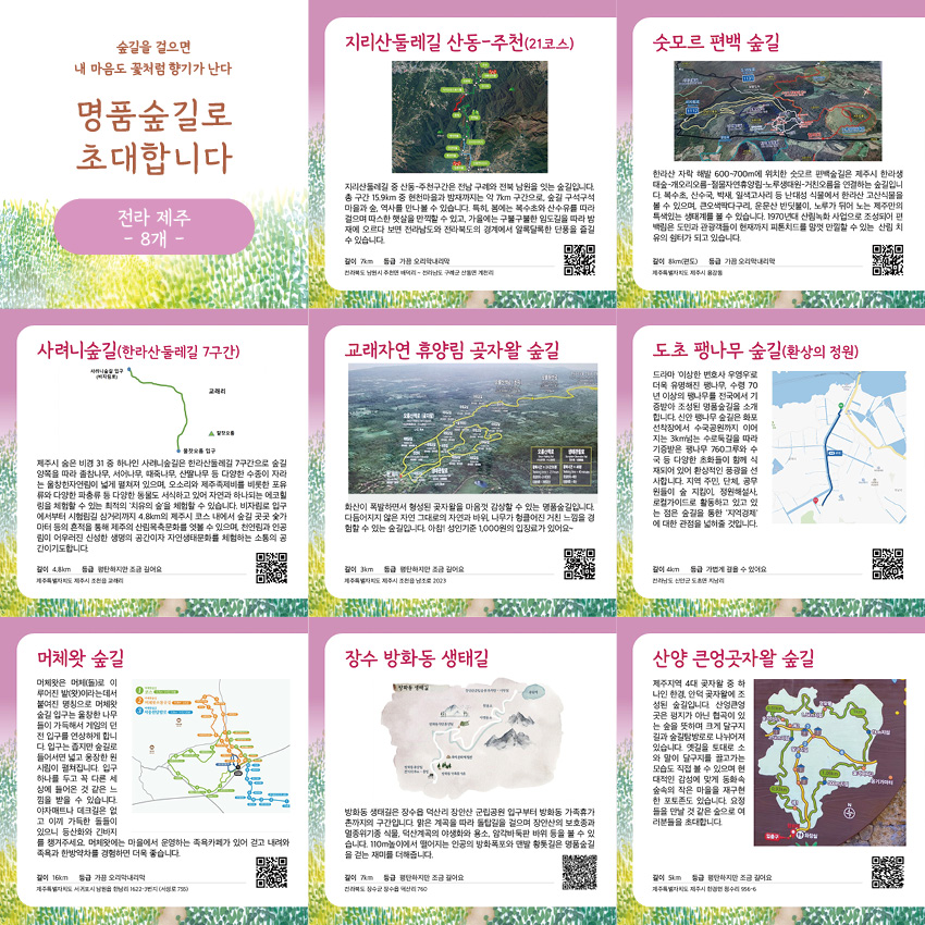 혼자 걷기도 좋고 가족들과 함께 걷기도 좋은 숲길 중 이번 포스팅에서는 4탄_전라/제주권 8곳을 소개해드릴게요.