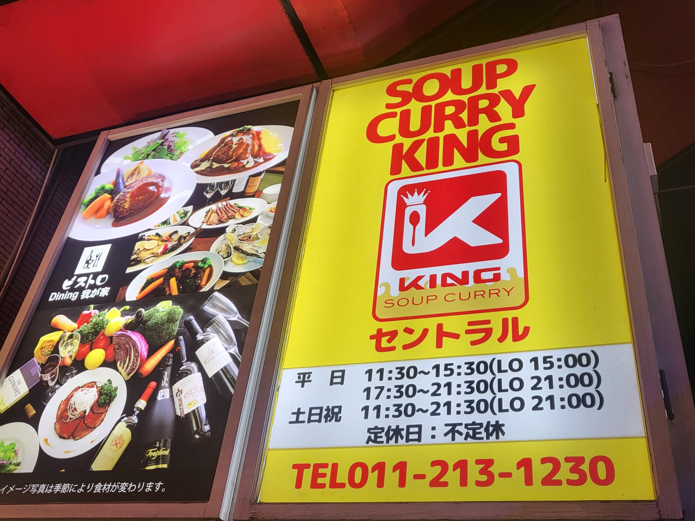 삿포로에서 꼭 먹어봐야 할 음식 중 하나인 '수프카레'를 먹기 위해 '수프카레 킹 센트럴'에 갔는데요. 시간이 어느 정도 여유롭다고 생각해 갔지만 저희가 라스트 오더여서 깜짝 놀랐는데요. 오후 9시 30분 마감이기는 하지만 재료 소진 여부에 따라 문을 더 빨리 닫을 수도 있다고 합니다.