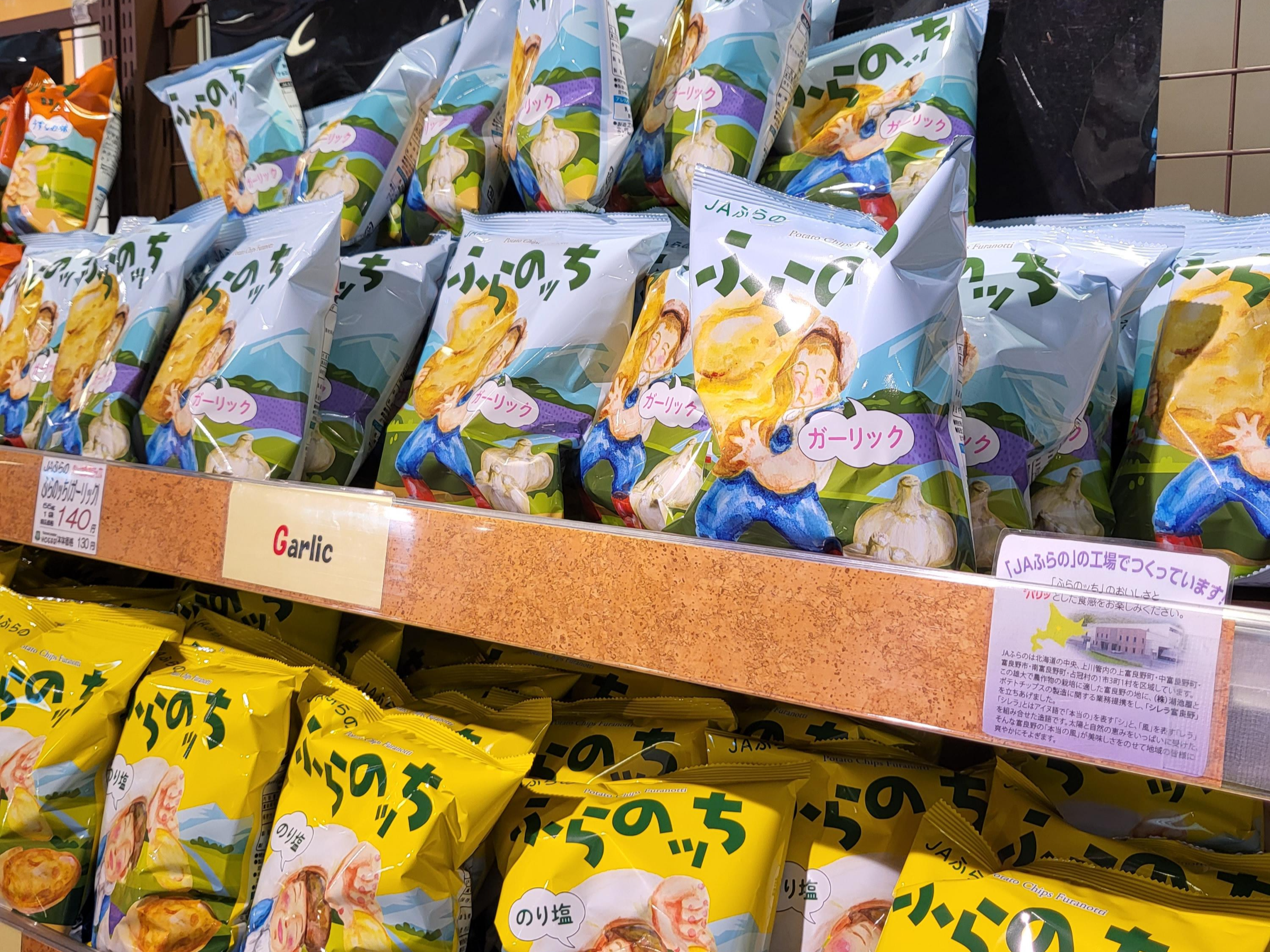 개인적으로 후라노 마르쉐에서 가장 추천하는 건 감자칩 '후라놋치'인데요. '후라놋치'는 소금, 콘소메, 김, 갈릭 총 네 가지 맛으로 다른 감자칩 과자들보다 바삭하고 고급스러운 맛이 일품입니다. (맥주가 당기는 맛!)