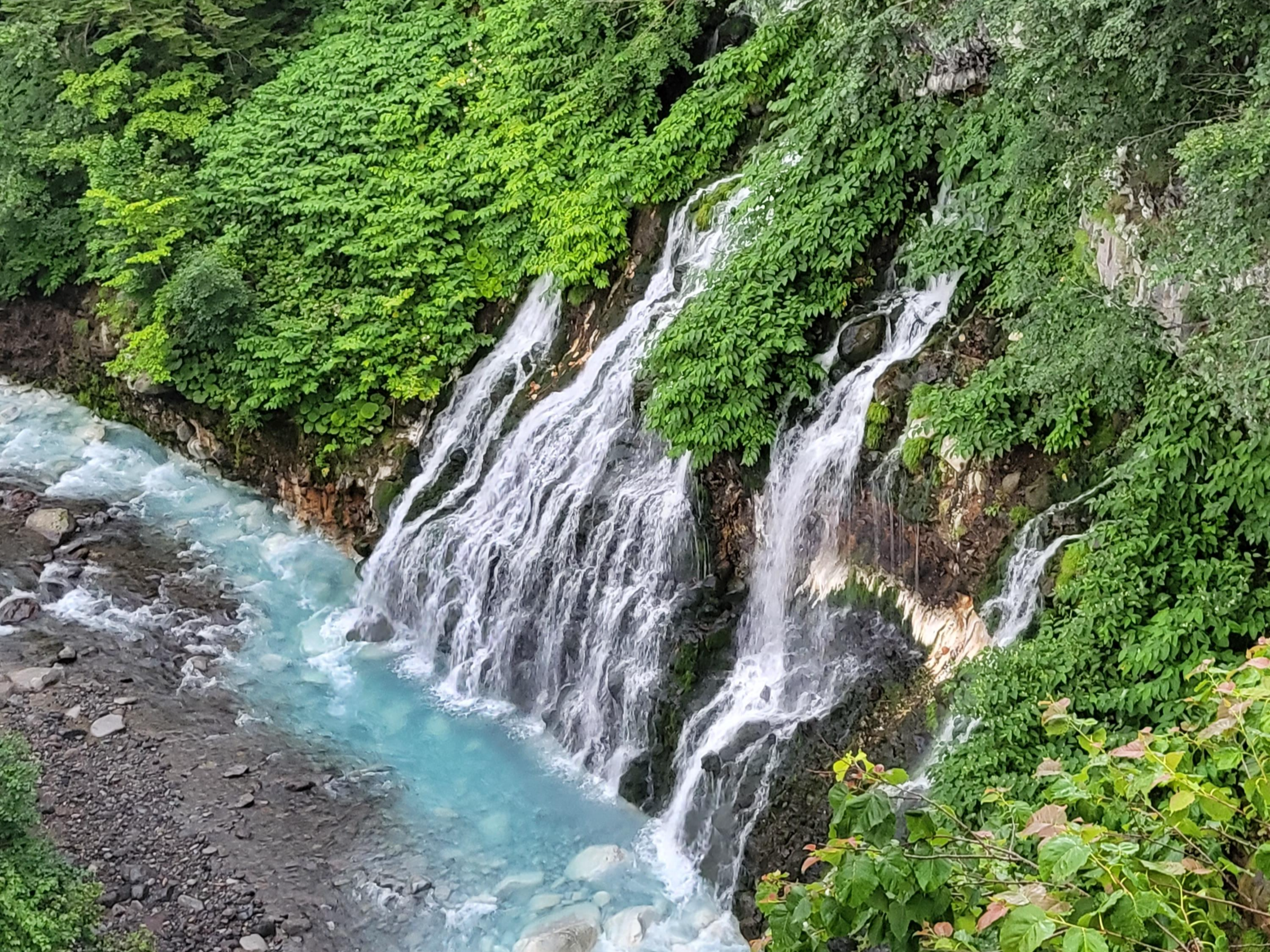 비에이강에 위치한 폭포로 절벽 바위 틈새에서 물이 흘러내리는 모습이 흰 수염을 닮았다고 해서 '흰 수염 폭포'로 불린다고 합니다. 이곳에서 흐르는 물이 '청의 호수'로 흘러들어간다고 하네요. 시원하게 떨어지는 물줄기를 다리 위에서 바라보면 마음까지 뻥 뚫리는 느낌인데요. 폭포에 도착했을 때부터 비가 오는 바람에 아쉽게 오랜 시간 머물지는 못했네요.