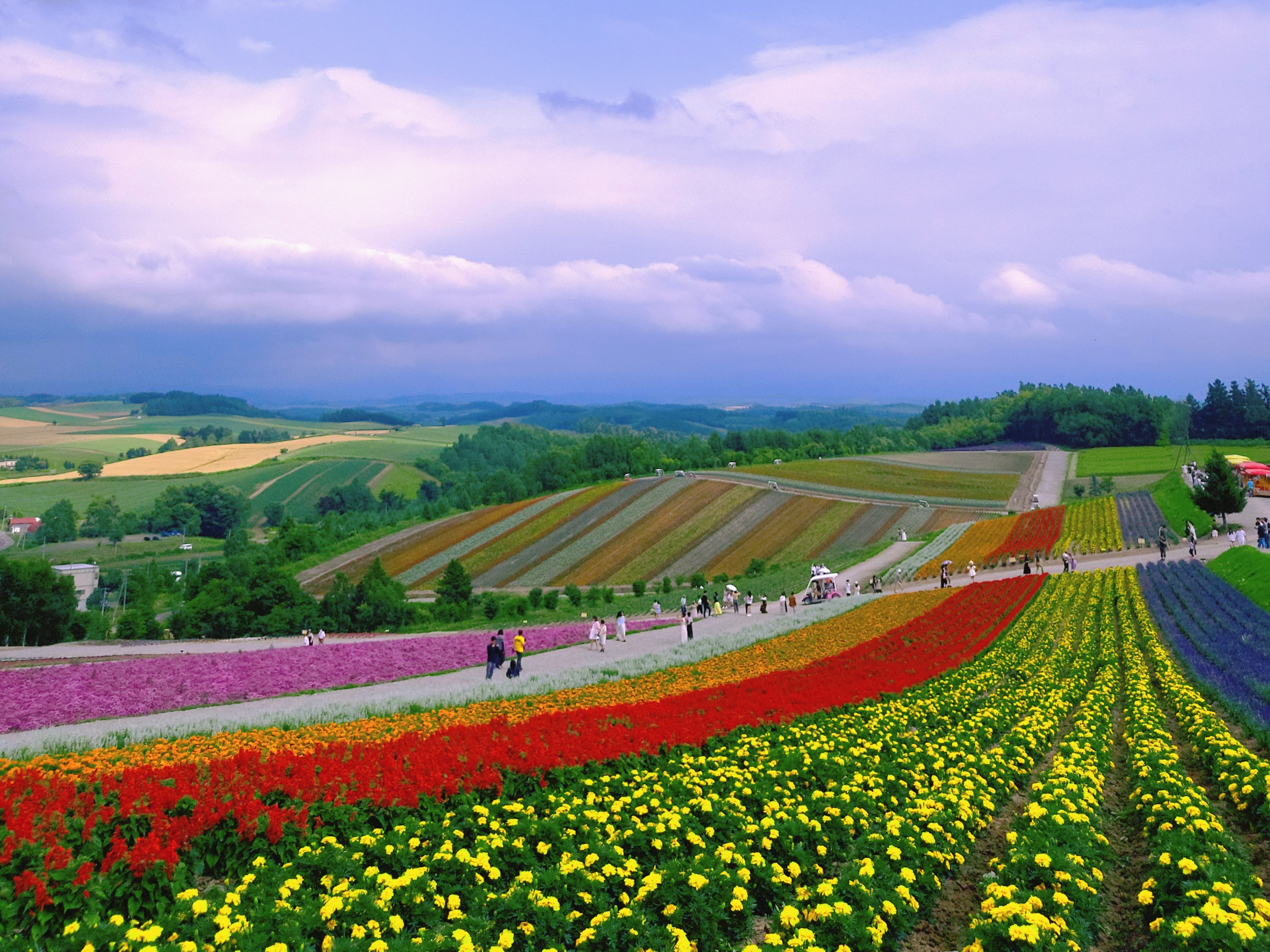 약 15헥타르나 되는 압도적인 스케일의 꽃밭을 볼 수 있는 '시키사이노오카'입니다. 구릉 위에서 내려다보면 색색깔의 꽃이 무지개처럼 펼쳐져 있는데요. 5월부터 10월까지 꽃을 구경할 수 있지만 7월~8월이 절정이라고 합니다. 넓은 꽃밭 주변을 걸으며 산책할 수도 있지만 트랙터가 끄는 버스나 카트를 타고 둘러보는 걸 추천드려요. (걷기에는 너무 넓어요. 요금은 트랙터 버스 500엔, 카트 2200엔 정도) 알파카들을 만나볼 수 있는 알파카 목장도 있으나 시간 관계상 가보지는 못했답니다.