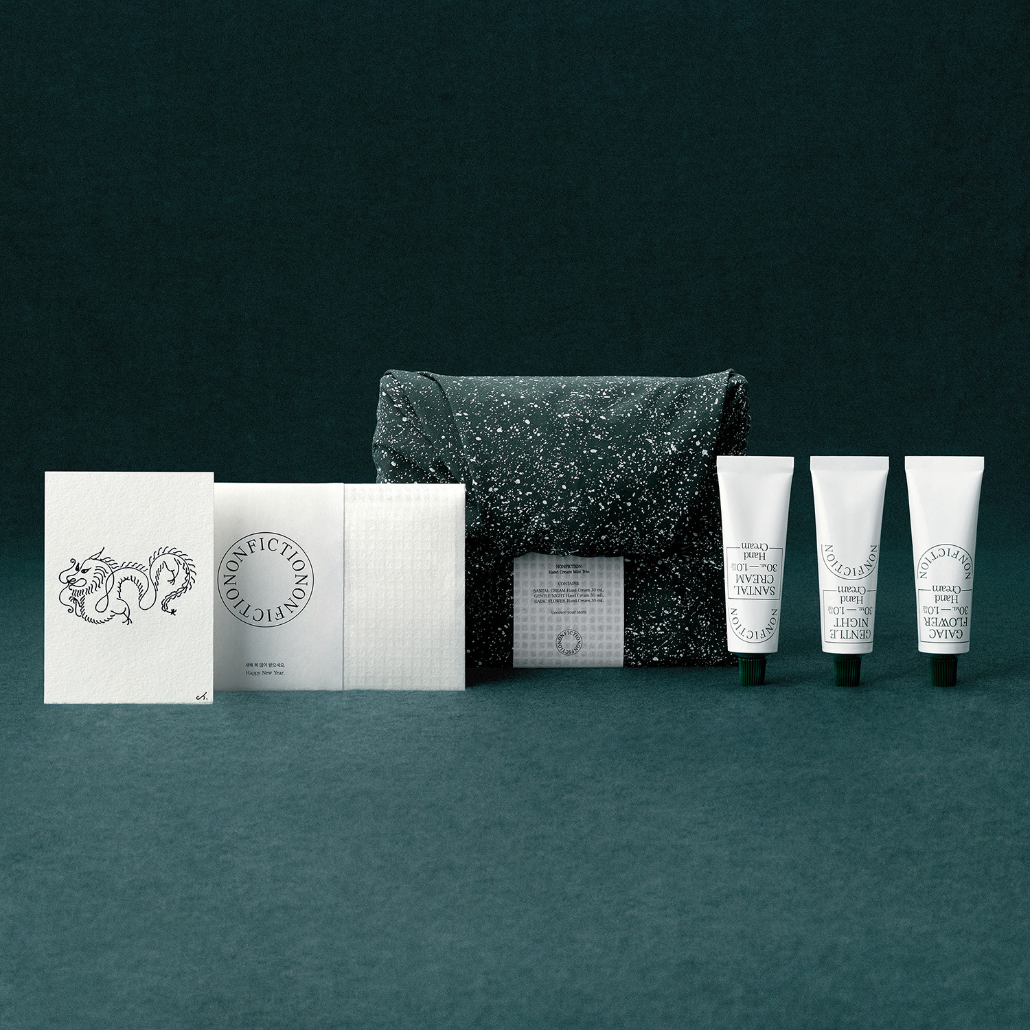 감각적인 디자인과 향으로 사랑받는 논픽션 핸드크림 기프트 세트입니다. 이번 설에도 핸드크림 베스트 3종을 멋진 보자기 패키지에 담은 기프트 세트를 선보이고 있죠. 용의 해를 상징하는 청룡 엽서와 용돈 봉투가 함께 들어가 있어 선물용으로 제격입니다.