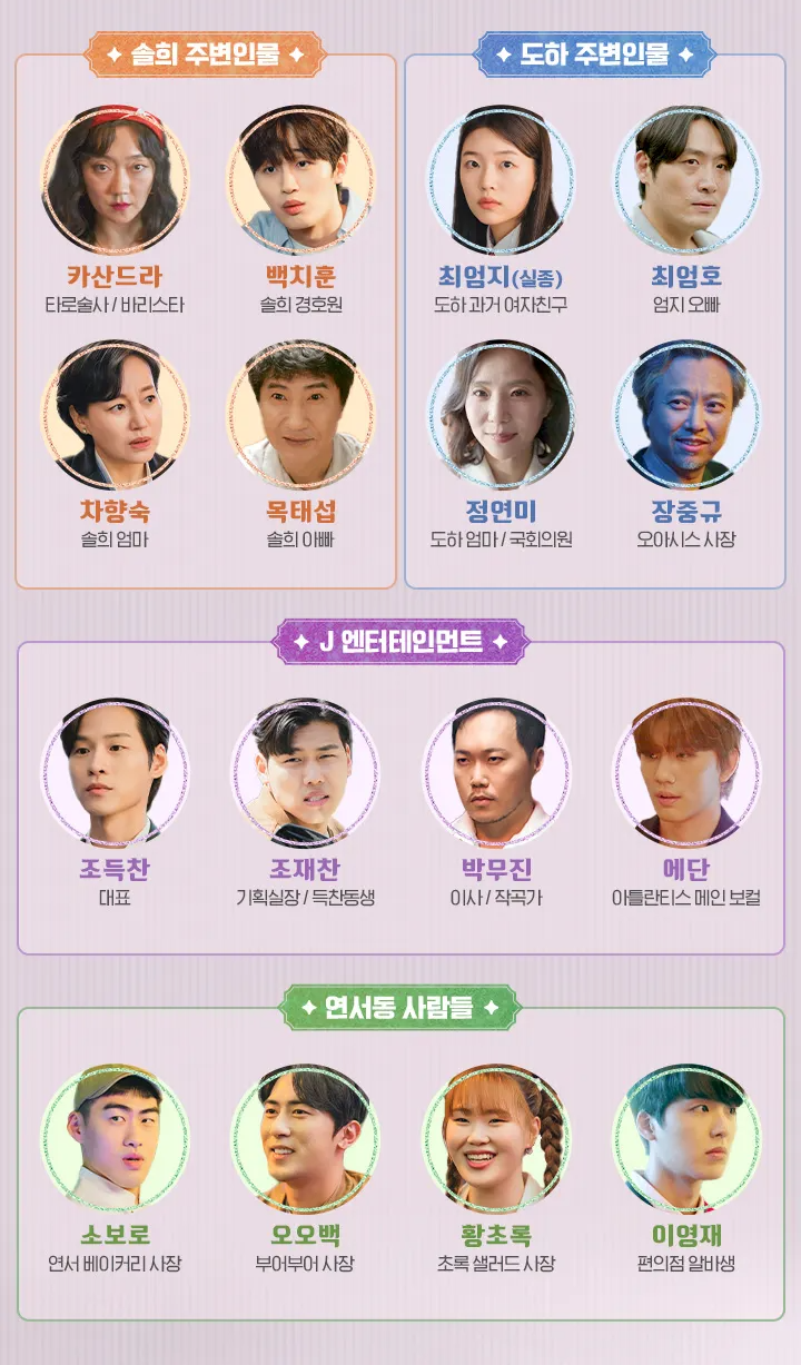 이외에도 J 엔터테인먼트, 연서동 사람들까지 다양한 인물들이 등장합니다. 진경, 안내상, 하종우, 박경혜, 송진우 등 개성 넘치는 다양한 인물들이 출연하는데요. 개인적으로 소보로, 오오백, 황초록 3인방의 케미가 빵빵 터지는 게 정말 좋았습니다.(이름도 정말 귀염뽀짝)