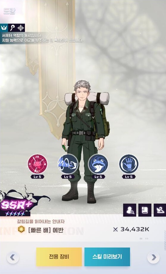 다음은 꼭 뽑아야 하는 서포터 에반입니다. (근데 에반이 원래 이렇게 다리가 짧았나요??)