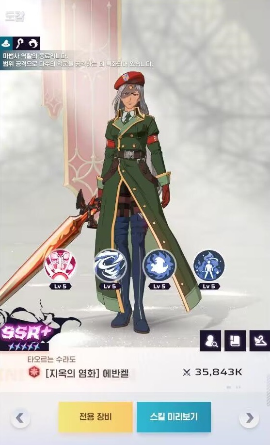 에반켈은 광역 공격과 함께 도트 피해, CC기도 가지고 있어 높은 누적 피해를 자랑합니다. 여기에 딜만 센 물몸 딜러가 아니라 자신의 체력을 회복하고 스킬 사용 시 무적, 상태 이상 면역 등 생존성도 좋은 육각형 딜러라 추천드립니다.