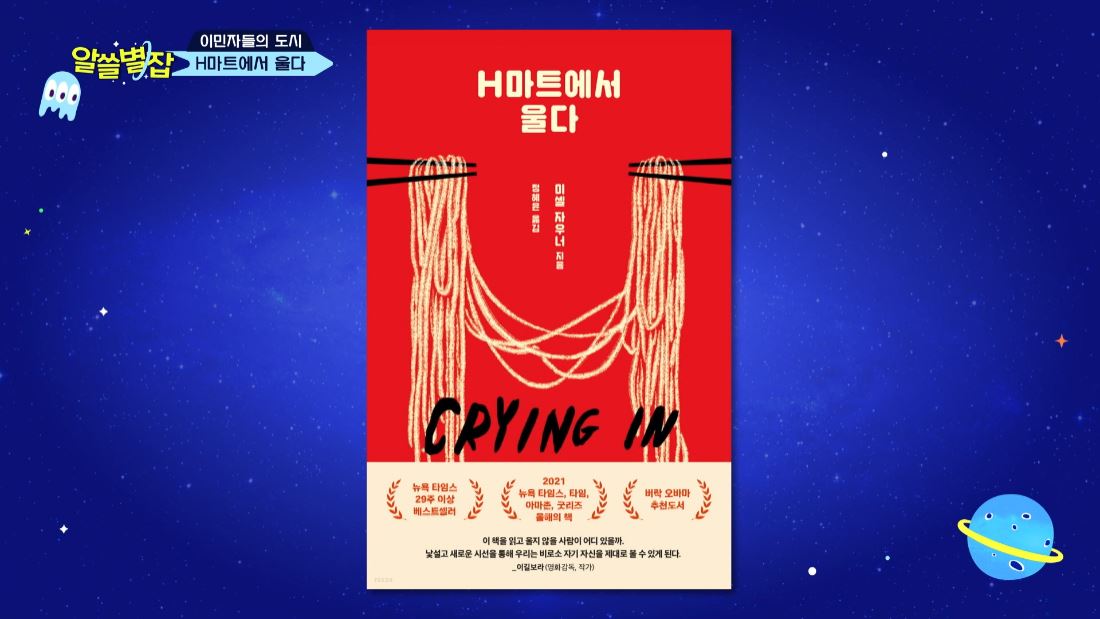 뉴욕 이민의 역사에 대해 이야기하면서 등장했던 책 <H마트에서 울다>입니다. 인디 팝 밴드 '재패니즈 브렉퍼스트'의 보컬이자 한국계 미국인인 '미셸 자우너'의 성장기를 담은 에세이인데요. 한국과 미국 사이에서 정체성 혼란을 가지던 미셸이 갑작스러운 어머니의 죽음으로 어머니의 음식을 추억하며 한인 마트인 'H마트'에서 식재료를 사 요리를 하게 되면서 엄마와의 추억을 되찾아가는 이야기를 다루고 있습니다.
