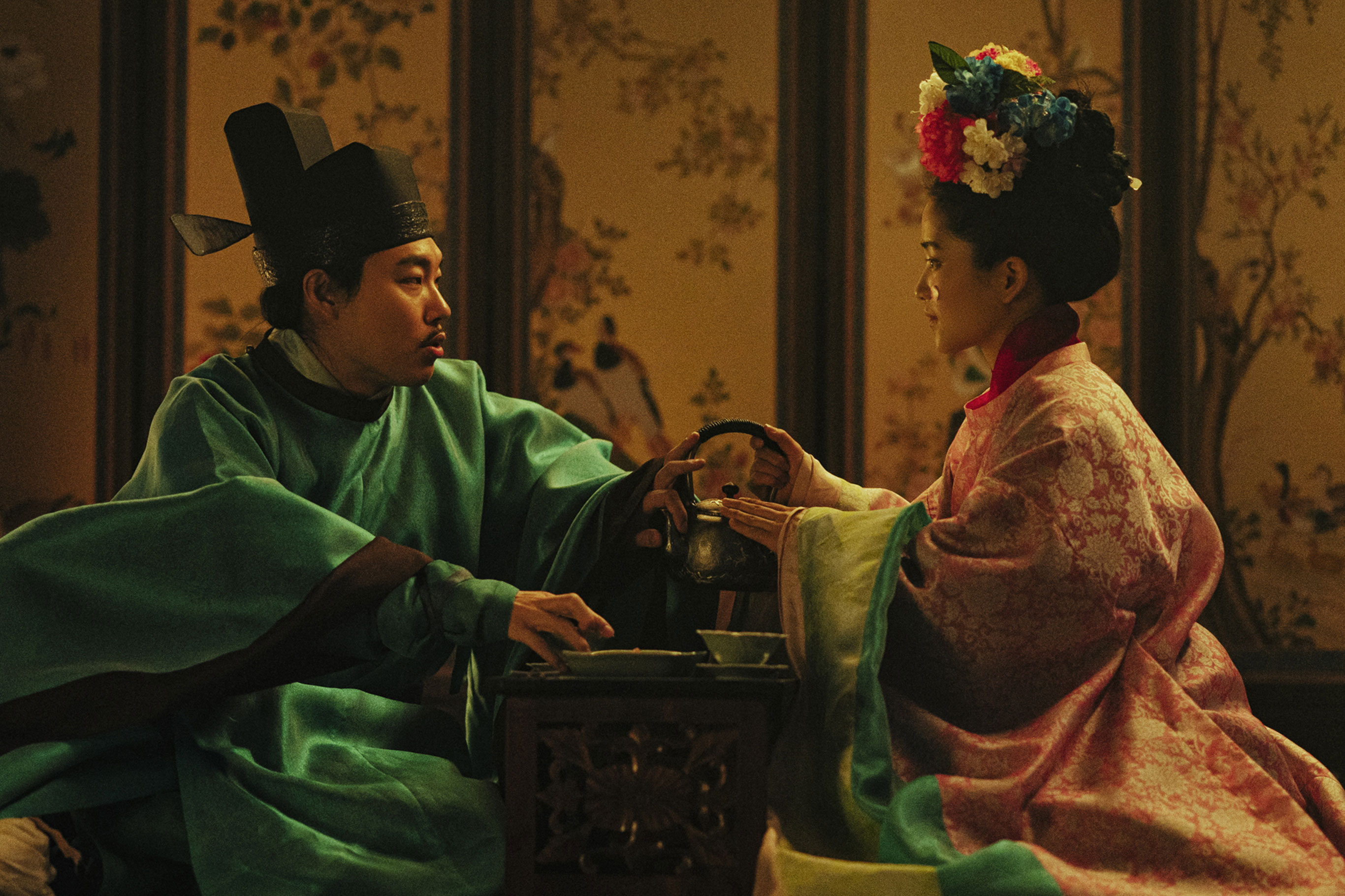 무륵은 신랑 일행을 급습, 가짜 신랑을 변신해 신검을 찾습니다. 신방에서 신부와 첫 대면을 한 순간 신부 쪽이 이안(이안 역시 진짜 신부와 바꿔치기 한 상황)이라는 걸 알게 되죠. 무륵은 이안을 보고 기시감을 느낍니다. 그러나 이안이 독을 탄 술을 마시고 그대로 쓰러지죠.