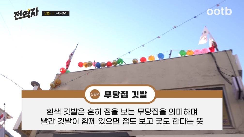 이름의 유래대로 신당역 3-4번 출구 주변에는 점집이 많이 모여 있는데요. 점집마다 다르겠지만 점을 보는데 보통 5만 원~10만 원 정도 비용이 든다고 합니다. 보통 흰색 깃발은 점을 보는 무당집을 의미하며 빨간 깃발이 함께 있으면 점도 보고 굿도 한다는 뜻이라고 하네요.