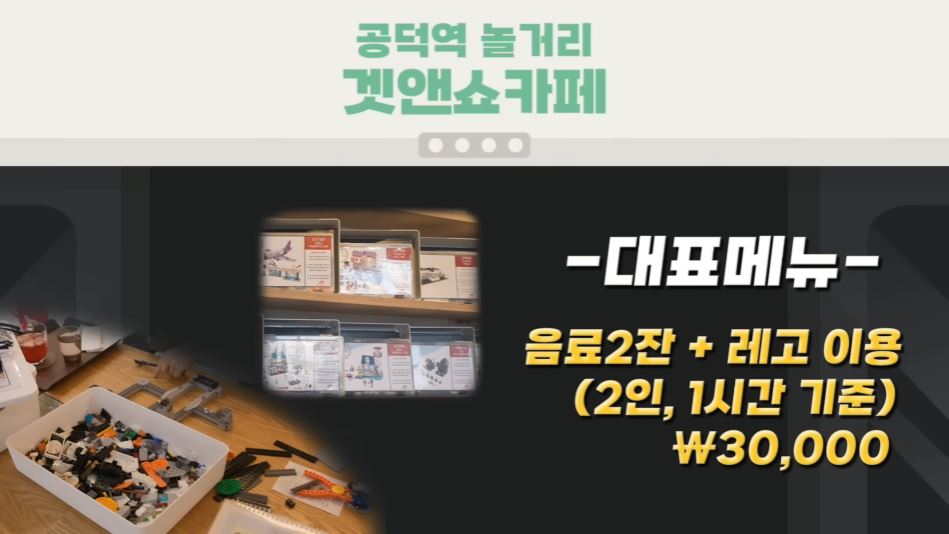 대표메뉴 : 음료 2잔 + 레고 이용(2인, 1시간 기준) 3만 원
