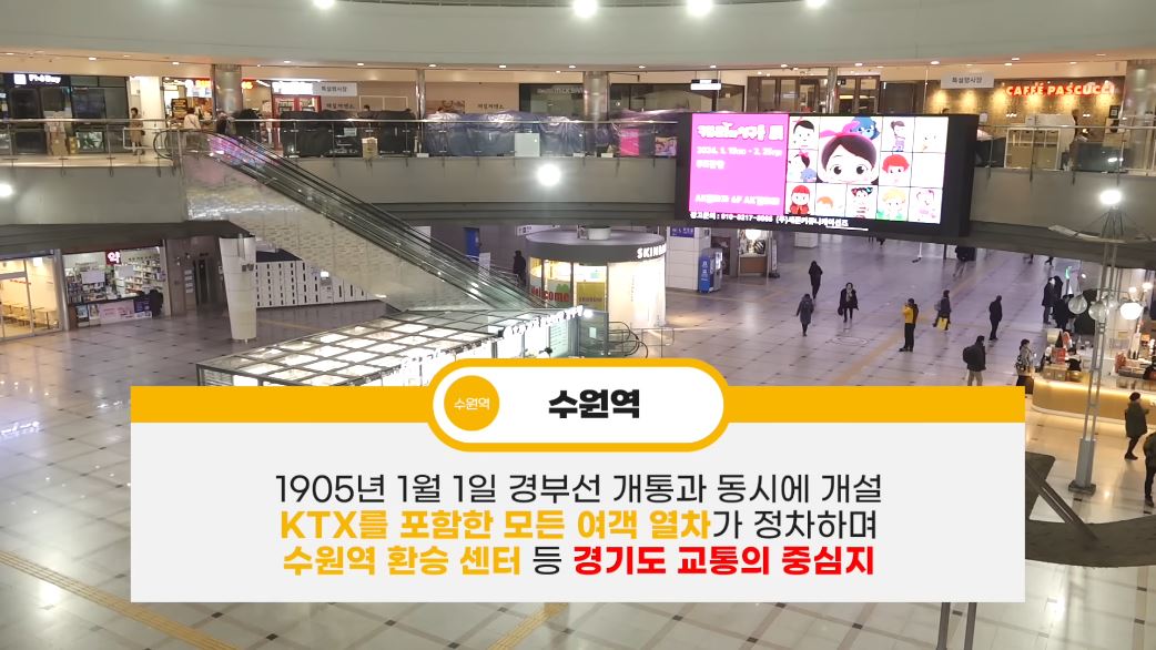 수원역은 1호선, 수인분당선을 비롯해 KTX, ITX-새마을호 등 거의 모든 여객 열차가 지나가는 명실상부 수도권 교통의 중심지입니다.