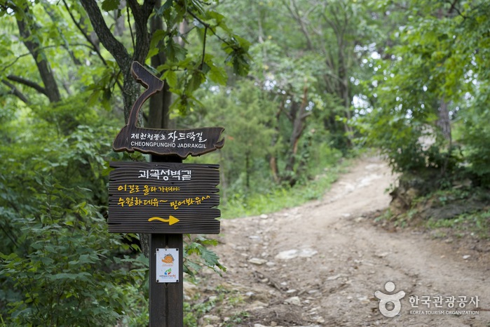 청풍호자드락길 제6코스는 괴곡성벽길이다. 옥순봉쉼터에서 시작해 괴곡리와 다불리를 지나 지곡리 고수골에 이르는 길로서 과거 성벽을 이루었던 곳이라 하여 이 같은 이름을 얻게 됐다. 청풍호자드락길 가운데에서 난이도 ''上''에 속하는 성벽 길은 멋진 조망과 다양한 식물군이 하모니를 이루고 있는 코스로 재미와 만족도 역시 ''上''에 속한다. 성벽 길의 중간 지점인 다불암에 이를 때까진 화장실이나 샘이 따로 없어서 옥순봉쉼터에서 충분히 준비하고 출발하는 것이 좋다. 괴곡성벽길 코스를 걸으며 아름다운 청풍호의 풍광을 만끽하며 힐링해 보자.