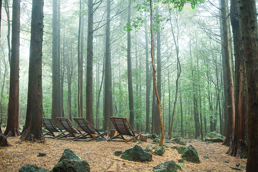 제주는 섬 전체가 아름다운 청정 자연을 느낄 수 있는 곳이지만 서귀포에 위치한 치유의 숲은 특히 손꼽히는 곳이다. 해발 320~760m에 위치해 난대림과 온대림은 다양한 식생을 한자리에서 고루 감상 할 수 있다는 점은 가능 큰 매력이다. 수령 70여 년이 넘는 편백나무와 삼나무가 빼곡한 숲을 이용한 생애주기별 맞춤형 산림 치유 프로그램을 경험할 수 있다는 점 역시 이곳을 방문해야 할 중요한 이유다. 치유의숲은 자연의 다양한 요소와의 접촉, 관찰 등 체험 프로그램과 보행. 등산. 체조 등 운동프로그램, 휴식, 놀이 등 여가프로그램을 운영한다.