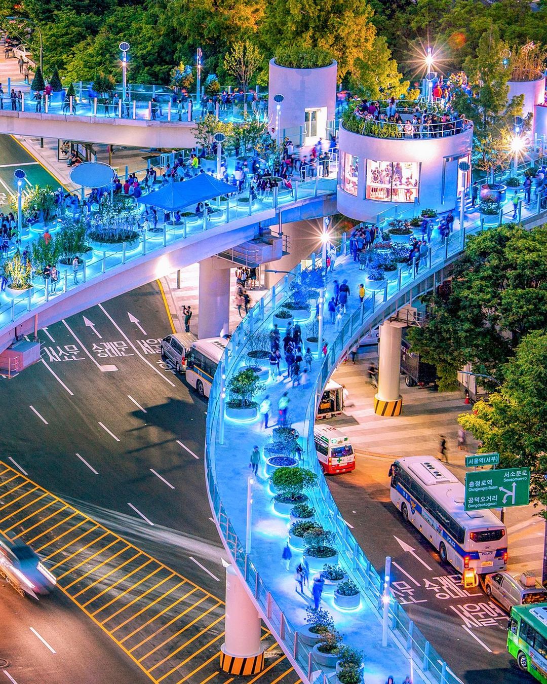 걷기를 좋아하는 뚜벅이라면 만리재길을 추천해요. 만리재길은 공덕동 오거리부터 서울역 서부(서울로 7017)까지 이어지는 고갯길로 인스타 감성이 물씬 묻어나는 다양한 카페와 음식점을 만날 수 있죠. 특히 서울로 7017은 서울역 고가도로가 녹지공간으로 재탄생한 곳으로 밤이 되면 화려하게 반짝이는 조명들과 함께 분위기 있는 산책이 가능하답니다.