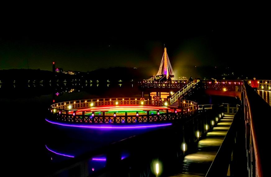 군산 경암동 철길마을은 옛 군산역을 리모델링해 귀엽고 아기자기한 가게들이 철길을 따라 모여 있는데요. 조명이 화사하게 거리를 비추는 철로를 배경을 사진을 찍기에도 제격이죠. 밤에는 오색찬란한 조명이 화려하게 색을 바꾸는 은파 호수공원을 가보는 걸 추천드려요.