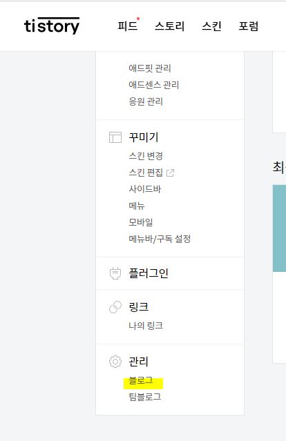 먼저 해당 블로그의 '관리'에 들어가 가장 하단 메뉴인 '블로그'를 눌러 들어갑니다.