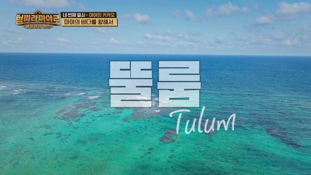 산끄리스또발을 떠나 멤버들이 다음으로 향한 곳은 멕시코 동쪽 끝에 위치한 도시, 뚤룸(Tulum)입니다. 멕시코 깐꾼(Cancun) 공항에 내린 멤버들은 차를 타고 뚤룸으로 향하게 되는데요. 깐꾼에서 13km 남쪽에 위치한 뚤룸은 '해가 가장 먼저 뜨는 곳'이라는 뜻으로 천혜의 자연을 간직한 아름다운 도시입니다.