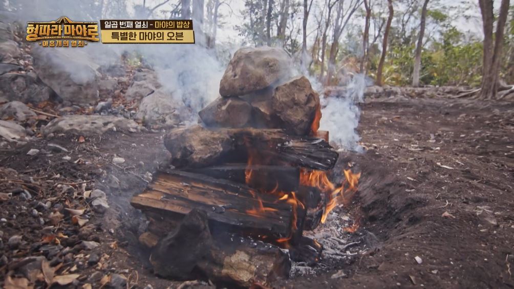 멤버들이 처음 만난 건 바로 마야 전통 오븐 '피브'입니다. '피브(pib)'는 구덩이 안에 뜨겁게 달군 돌을 넣고 다시 덮어 음식을 익히는 일종의 땅속 오븐을 말합니다. 뜨겁게 달군 돌 속에 바나나잎으로 싼 음식을 넣어 익히는 것이죠. 돌의 온기만으로 음식을 익혀야 하기에 만들기까지 꽤 오랜 시간이 걸린다고 하네요. (최소 24시간)