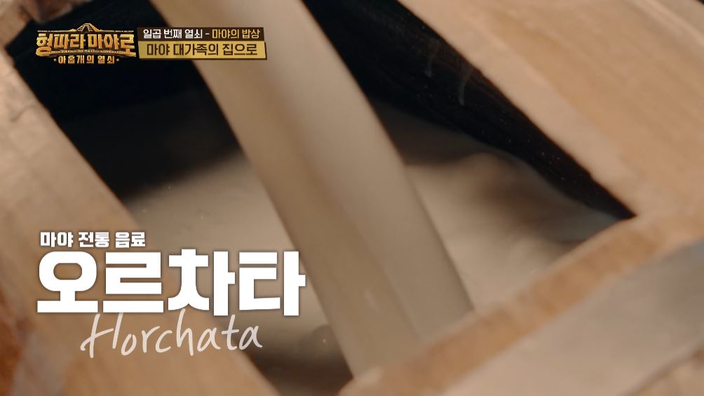 이번 7번째 주제가 마야의 음식인 만큼 마야의 다양한 음식들이 소개되었는데요. 그 첫 번째는 바로 마야의 전통 음료, 오르차타(Horchata)입니다. 오르차타는 식물로 만든 여러 음료를 일컫는 말로 보통 쌀과 우유를 갈아서 만든 음료를 말합니다. 여기에 계피나 바닐라를 참가해 먹기도 한다고 하네요. 우리나라 수정과와 맛이 조금 비슷한 느낌이라고 하네요.