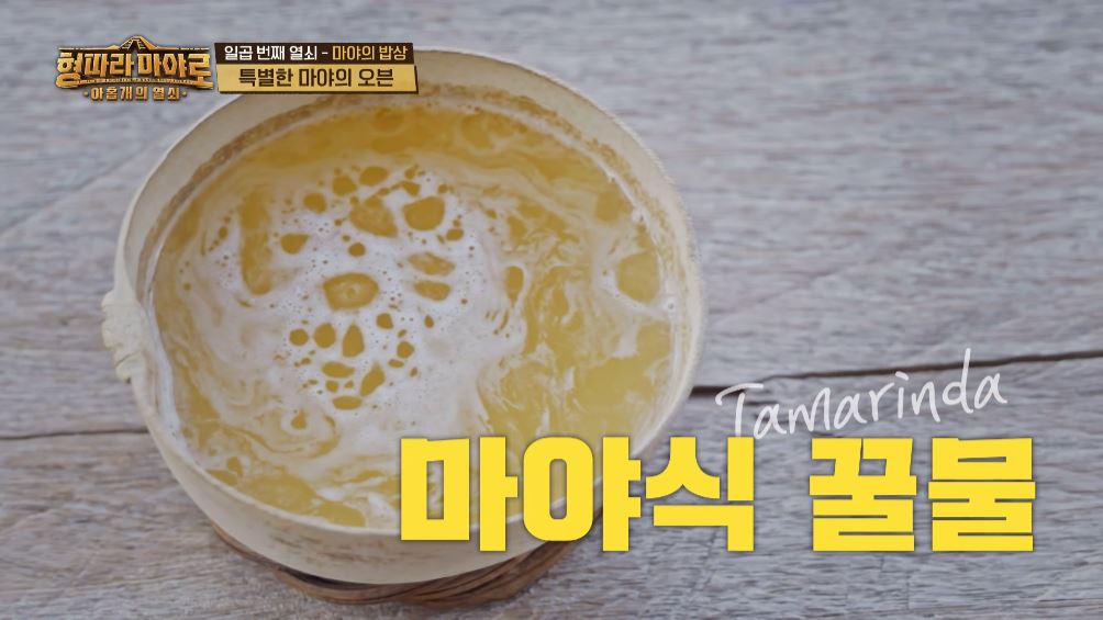 두 번째로 소개된 음식은 마야식 꿀물, 따마린다 (Tamarinda)입니다. 마야는 벌을 신으로 모신 만큼 꿀을 신이 준 선물로 귀하게 여겼다고 하는데요. 특히 마야의 벌은 통나무 속에 벌집을 짓고 사는데 우리나라 벌보다 훨씬 작고 침이 없고 유순해 사람을 공격하지 않는다고 합니다. 마야식 꿀물에는 꿀 말고도 따마린드 열매가 함께 들어가 우리나라 매실액처럼 새콤달콤한 맛이 특징입니다.