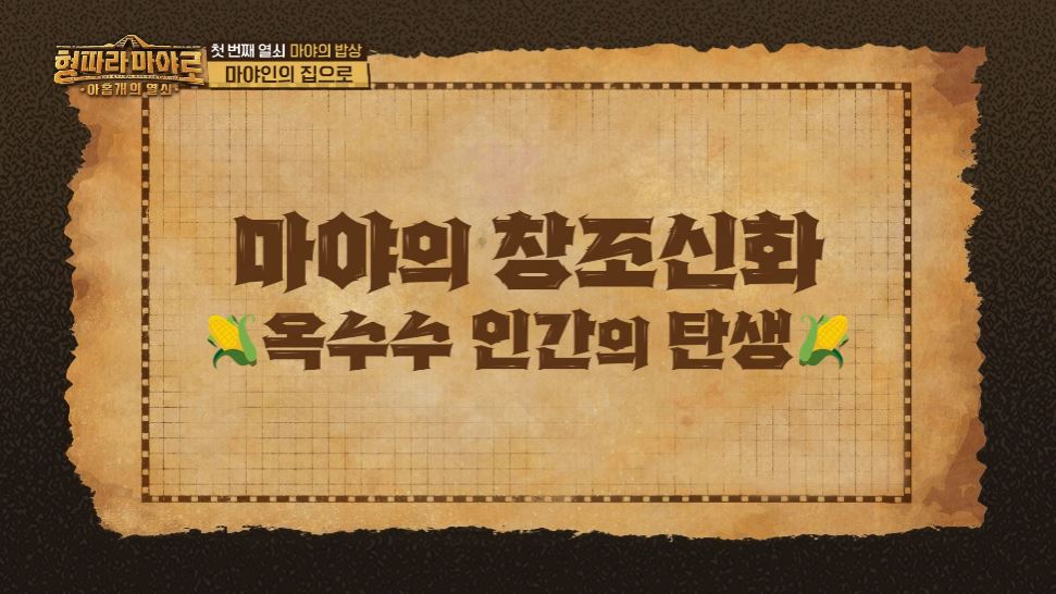 다른 여행 예능과 다르게 <형 따라 마야로>에서 재미있던 점은 다양한 마야 문명 이야기를 이해하기 쉽게 설명해 준다는 점이었습니다. 특히 마야 옥수수 인간 탄생 신화 이야기가 참 흥미로웠는데요.