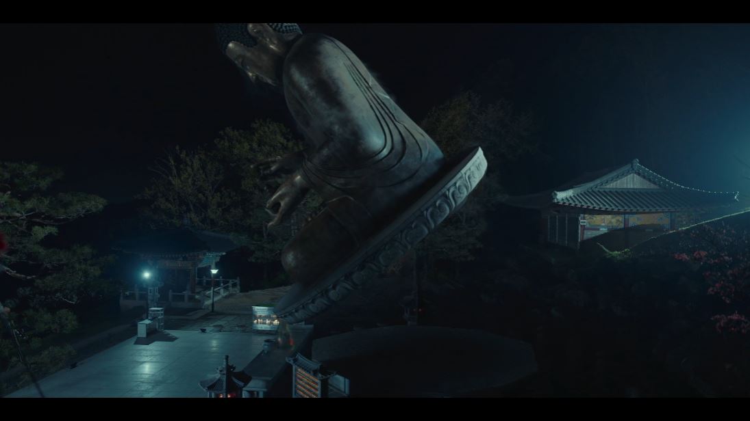 중간은 감응 효과는 한 명이 엄청난 힘을 써야만 가능하다며 남순을 깨우기 위해 엄청난 괴력으로 불상을 들어 올립니다. 그 충격으로 중간과 금주는 쓰러지게 되죠.