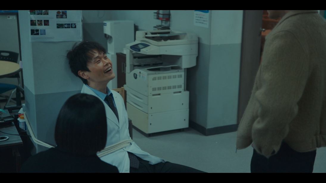 남순이 창고를 빠져나오자 시오는 마약을 먹고 엄청난 힘을 발휘해 남순을 제압합니다. 하지만 남순이 던진 쇠파이프에 배를 다치고 말죠. 뒤이어 희식이 창고로 오자 시오는 남순을 밀치고 도망갑니다.