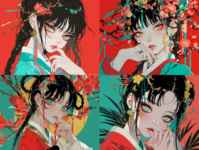a girl with korean traditional clothes, Japanes anime style. Created Using : vibrant colors, cute poses, detailed anime characters, soft lighting, wide angle, hd quality, natural look, --sref https://s.mj.run/EP5n7zPC0H4 https://s.mj.run/PhBTtfJ3Itg --ar 4:3 --style raw --no text --niji 6