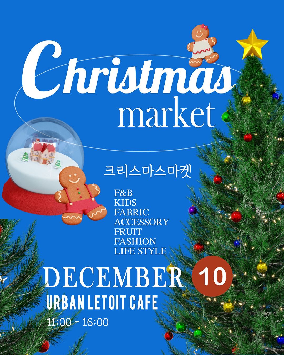 제주에서 즐기는 크리스마스! 제주 어반르토아에서는 12월 10일 하루 동안 크리스마스 마켓이 열릴 예정인데요. 다양한 먹거리부터 액세서리, 화장품 등 다양한 제품을 만날 수 있고 5만 원 이상 구매 고객들을 대상으로 꽝 없는 러키드로우 추첨도 진행한다고 하니 제주에 놀러 갈 예정이라면 가보시는 걸 추천드려요!