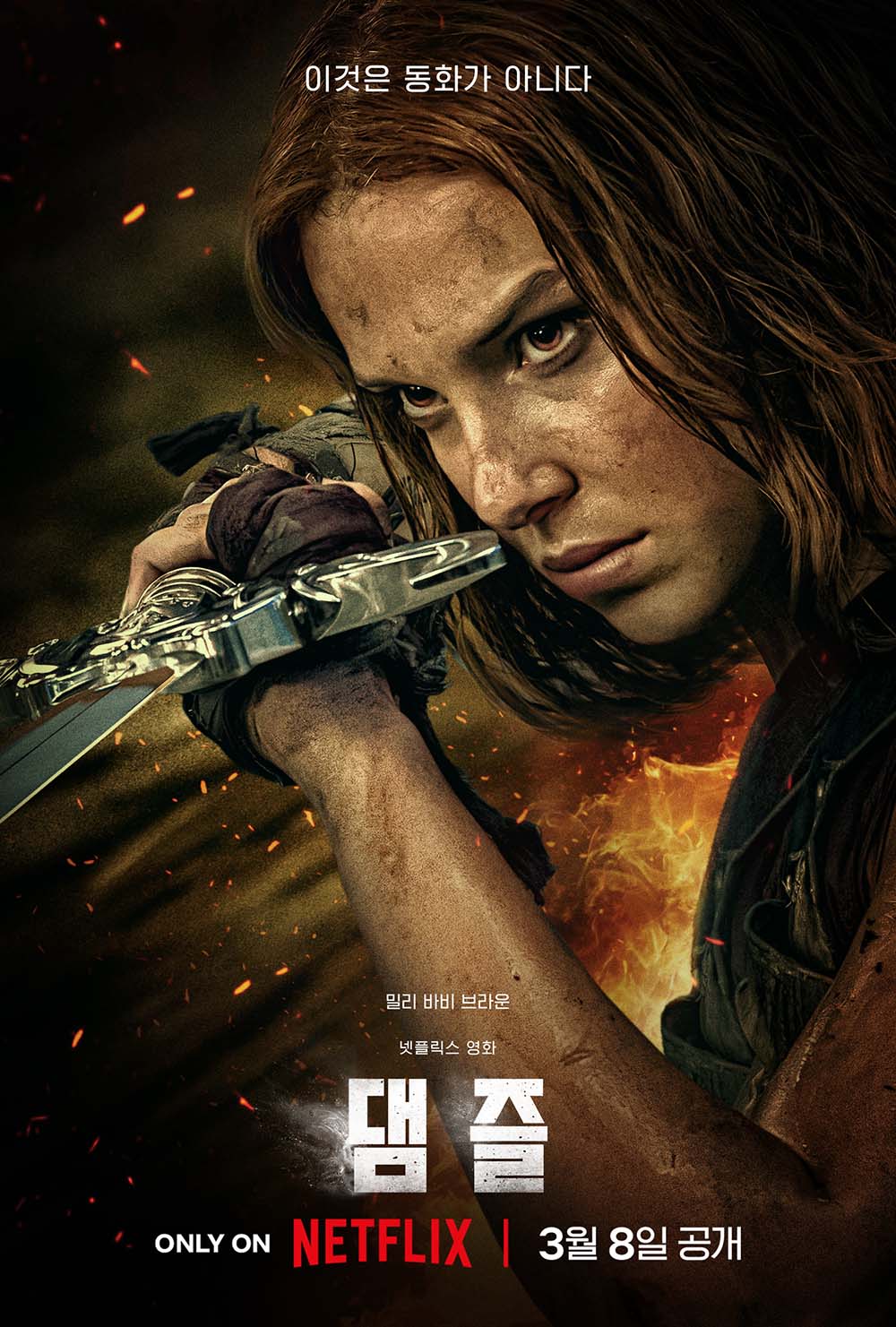 영화 <댐즐>은 멋진 왕자와 결혼을 꿈꿨지만, 배신을 당해 동굴에 갇힌 공주 '엘로디'가 오로지 자신의 지혜와 의지로 위기를 헤쳐나가는 이야기를 담은 판타지 영화입니다. 왕실과 왕자의 배신으로 무시무시한 용이 사는 동굴로 떨어지게 되는 이야기가 꽤 신선하게 다가오는데요. <기묘한 이야기>에서 인상적인 연기를 보여준 밀리 보비 브라운의 신작 영화라 더욱 기대를 모으는 작품입니다.