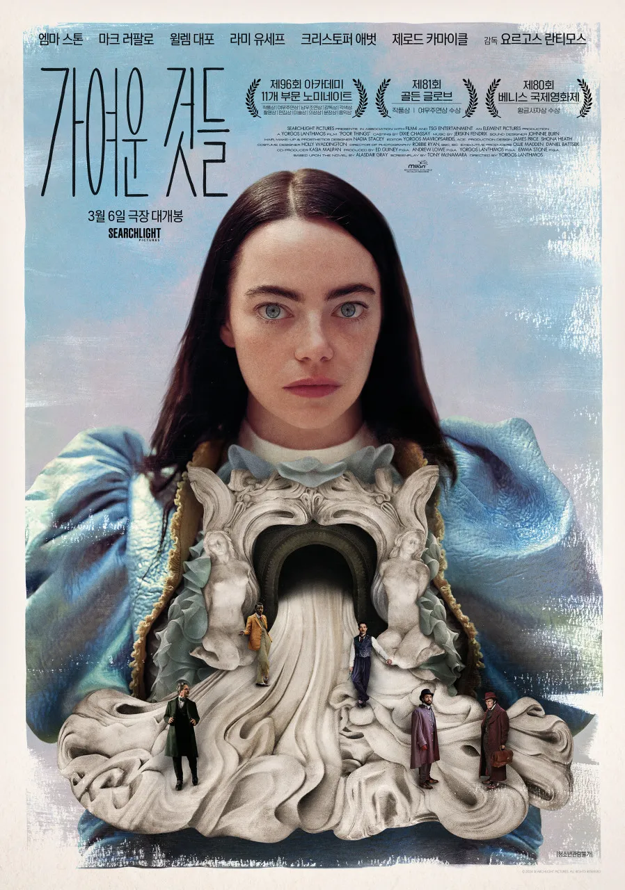 앨러스 데어 그레이의 소설 <가여운 것들>을 원작으로 한 영화로 천재적이지만 특이한 과학자 갓윈 백스터에 의해 새롭게 되살아난 벨라 백스터의 여정을 그린 영화입니다. 독특한 세계관과 몽환적인 분위기를 훌륭하게 연출해 제80회 베니스 국제 영화제 황금사자상을 수상한 작품인데요. 주연 배우인 엠마 스톤은 훌륭한 연기력으로 제96회 아카데미 시상식에서 여우주연상을 수상하기도 했죠. 보고 싶었다가 놓쳐 아쉬웠던 영화였는데 디즈니+에 개봉한다니 정말 반갑네요.