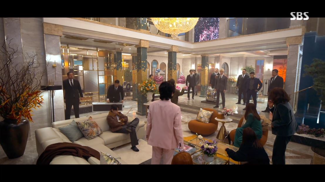 매튜의 발언 이후 강기탁과 부하들이 들이닥치고 매튜와 강기탁, 민도혁은 한 편임을 밝힙니다. 매튜는 6인의 일거수일투족을 티키타카를 통해 다 조사했다며 그들의 치부를 낱낱이 공개하죠. 또한 그는 6인이 걸었던 담보를 빌미로 K와 성찬그룹을 파멸시키는 것에 협조하라고 협박합니다.