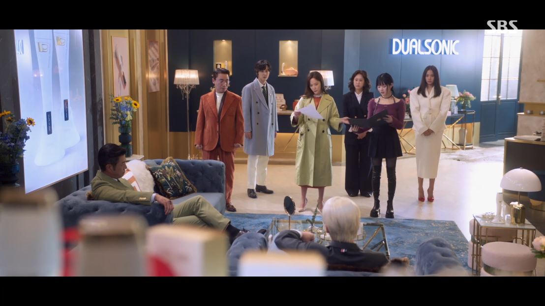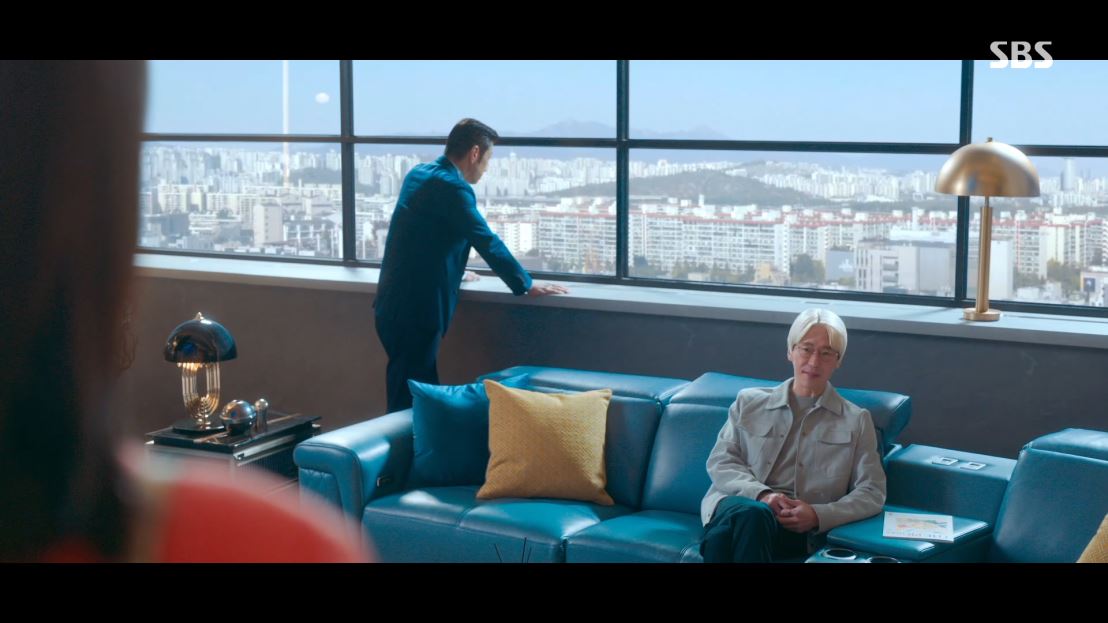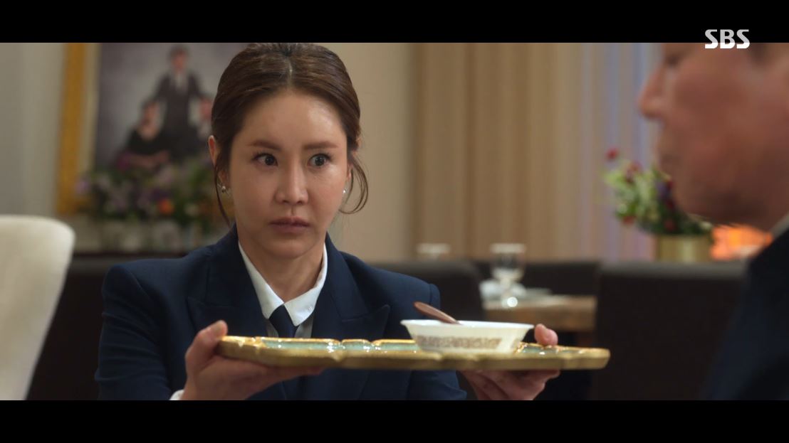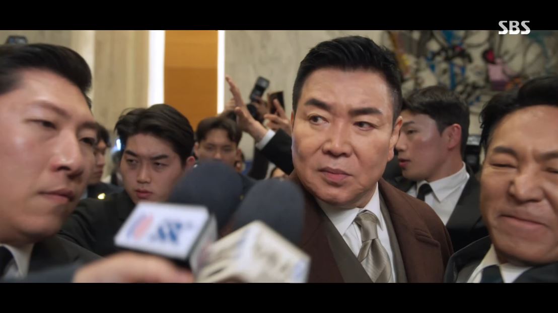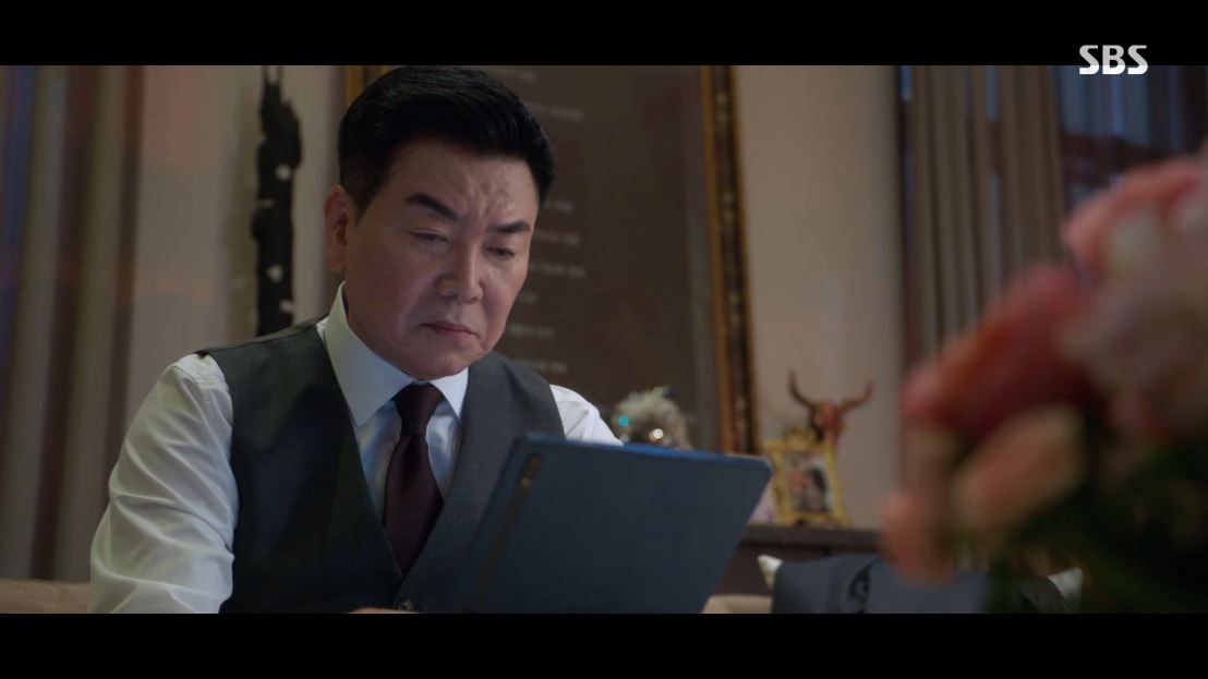심용 회장은 송지아와의 대화, 도혁의 협박, 그리고 미쉘 감독의 작품 발표까지 모든 사실을 지켜보고 K의 만행을 알게 됩니다. 비서인 구강재를 불러 다그치지만 구강재는 자신은 몰랐다고 부정하죠. 구강재는 이 모든 것이 티키타카 매튜 회장의 도발일 뿐이라고 말합니다.