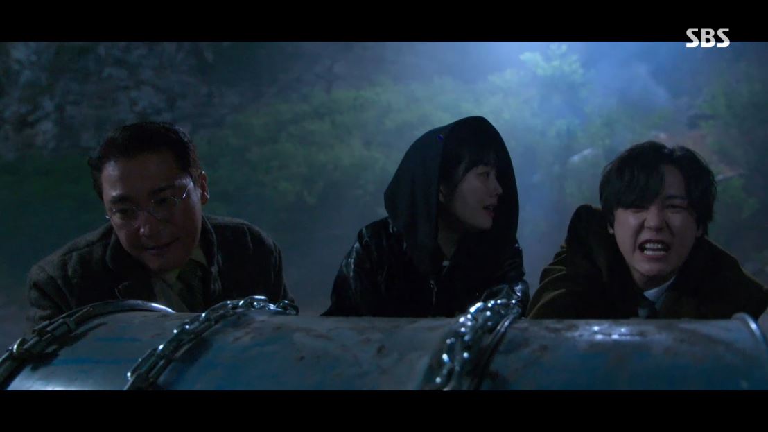 자신들도 죽을까 두려웠던 진모와 철우, 모네는 드럼통을 절벽 아래로 밀어버립니다. 하지만 쇠사슬 중간이 끊어져 있어 주란, 라희, 명지는 살아남죠. 멀리서 기탁이 다가오는 걸 본 라희는 6인과 함께 매튜를 공격하고 쇠사슬로 묶죠.