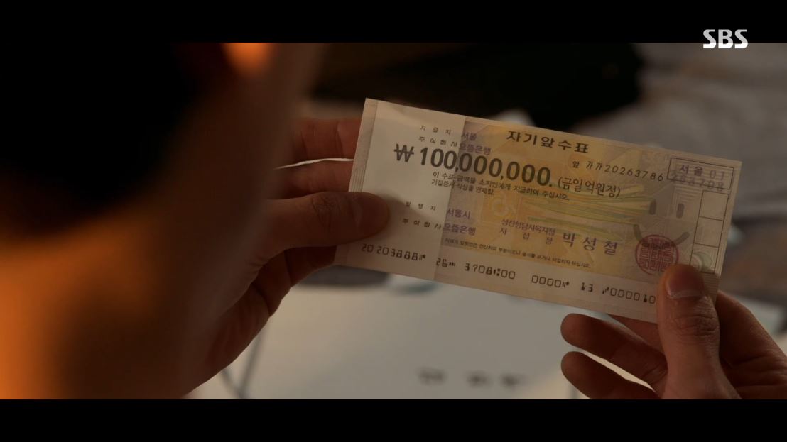 며칠 후 기탁의 말을 떠올리고 부의함을 열어본 도혁은 그 안에 성찬그룹에서 발행된 조의금 1억 수표를 발견합니다. 은행에 가보니 이는 위조수표였죠. 도혁은 K가 자신을 농락한 것을 깨닫고 성찬그룹 본사에 쳐들어가 심용 회장을 위협하며 K를 데려오라고 소리칩니다.