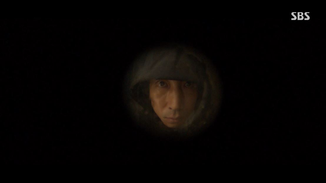집 앞에 수상한 사람이 지켜보고 있음을 깨달은 도혁은 뒤쫓아 가지만 놓치고 맙니다. 집으로 돌아온 도혁은 몰래 현관문 구멍을 통해 상황을 지켜보죠. 그리고 이때 한 남자가 집 앞에 다가옵니다.