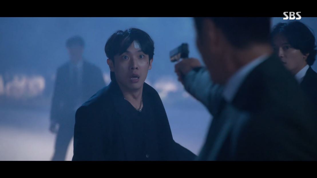 놀란 도혁은 매튜를 구하기 위해 달려가지만 기탁이 총으로 그를 막죠. 도혁은 개의치 않고 매튜를 구하러 가려고 하지만 전기충격기에 공격당해 결국 기절하고 맙니다.