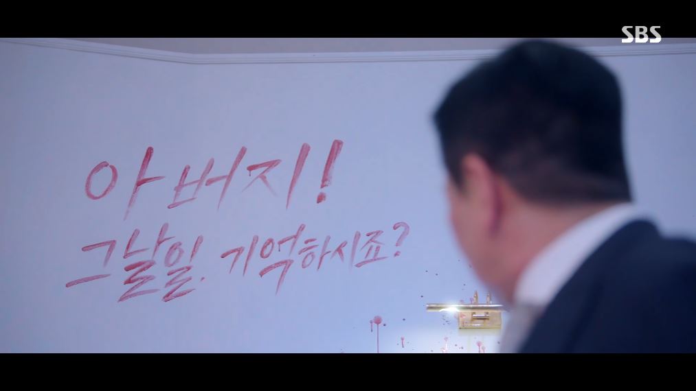 한편 심 회장은 살해된 홍 여사가 죽은 심 회장의 아내와 같은 자세로 발견됐고, 벽에 쓰인 ‘아버지! 그날 일 기억하시죠?’라는 메시지가 적힌 것을 보고 놀랍니다.